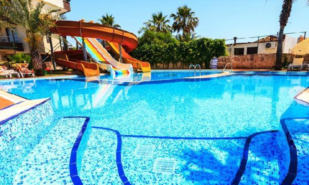 Отель с водными горками на уютной территории в окружении пальм находится на берегу моря, в 2 км от курортного поселка Окурджалар. Предлагает своим гостям отличные условия для комфортного семейного отдыха.