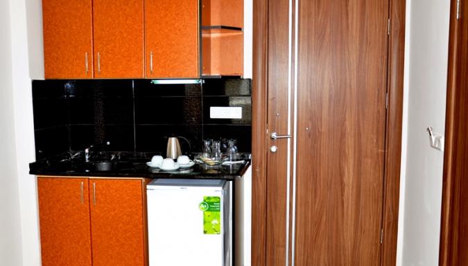 душ кухня (чайник) фен кондиционер смена белья: 2 раза в неделю уборка номера: 5 раз в неделю Wi-Fi (2 пароля бесплатно, третий - платно) сейф в номере, платно пол керамическая плитка балкон холодильник телевизор телефон