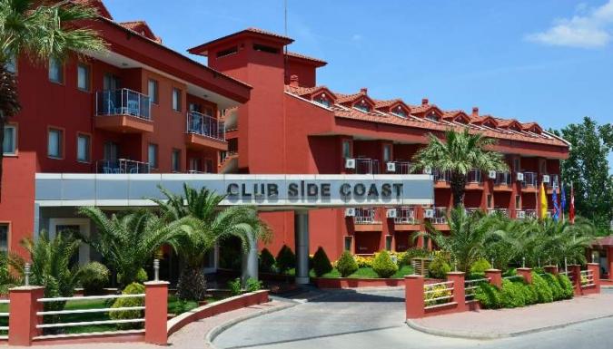 Отель CLUB SIDE COAST - совершенно новый отель, состоящий из одного 4-этажного корпуса. Отель находится в 400 м от песчаного пляжа. Между отелем и пляжем проходит дорога. До пляжа и обратно каждые 15 минут ходит бесплатный автобус. Шезлонги, матрасы, зонтики - бесплатно. Спорт на пляже: пляжный волейбол, водные виды спорта. На территории отеля расположены 2 открытых бассейна, один из которых с горками, закрытый и детский бассейны. Шезлонги, матрасы, зонтики и полотенца - бесплатно. Спорт: степ-аэробика, аэробика, волейбол, баскетбол, настольный теннис, бильярд. Есть теннисный корт. К услугам отдыхающих - сауна, массаж, фитнес-центр, тренажерный зал, а также парикмахерская. Питание ALL INСLUSIVE включает в себя: завтрак, поздний завтрак, обед, ужин, закуски в течение дня, традиционные турецкие блюда, алкогольные и безалкогольные напитки местного и некоторые напитки импортного производства. Напитки импортного производства, мороженое, напитки на дискотеке - за дополнительную плату. Имеется крытый ресторан (на 350 человек), открытый с террасой (550 человек), ресторан-закусочная и ресторан a la carte. Работает 6 баров: бар-ресторан, бары в холле, у бассейна, на пляже, на дискотеке и витаминный бар. Развлечения: анимация, спортивные мероприятия, игры и развлекательные программы для детей и взрослых, дискотека, игровая комната с настольными и электронными играми. Для детей: мини-клуб (от 4 до 12 лет). Прочие услуги: круглосуточная рецепция; парковка; прокат автомобилей; прачечная; обмен валюты; магазин; медицинский кабинет; холл; лифт.