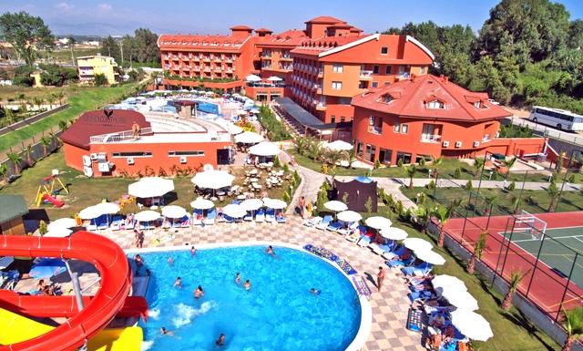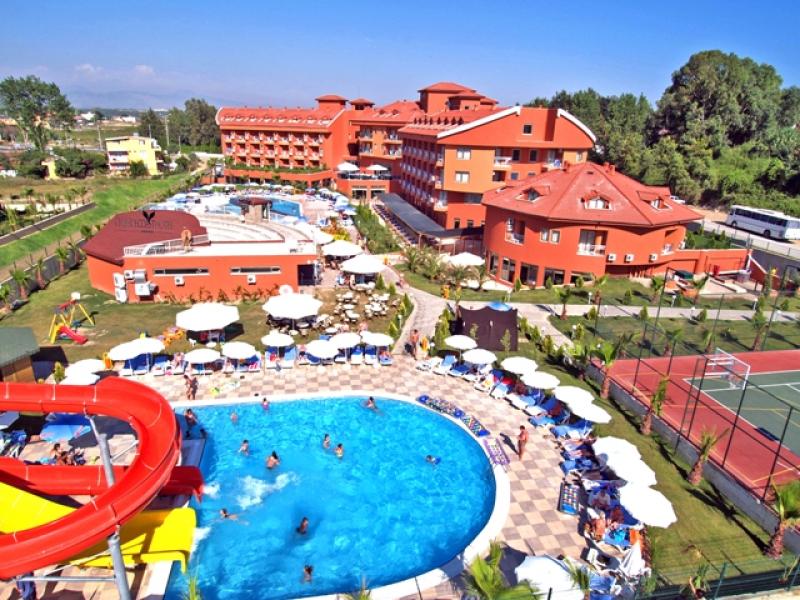 Небольшой отель в Сиде, в поселке Чолаклы. В 10 минутах езды находятся кафе, магазины, базары. На территории есть бассейны с водными горками. В 700 м расположен собственный пологий песчаный пляж. Шаттл-сервис до пляжа — бесплатно.