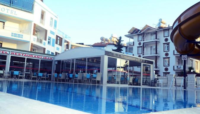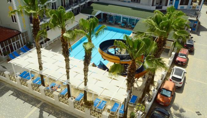 Отель расположен в 1 км от центра п.Сиде. Отель был открыт в 1992 году, последняя реновация проводилась в 2019-2020 г. Общая площадь территории составляет 1 000 кв.м. Состоит из одного 4-этажного здания с лифтом. Отель не размещает гостей с ограниченными физическими возможностями.