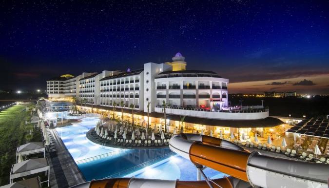 Reception, сад, лобби, 2 конференц-зала, оснащенных техническим оборудованием,открытый бассейн 750 м2,аква-бассейн 82 м2, 3 горки, крытый бассейн 76 м2,фитнес-центр,амфитеатр,ТВ зал,оздоровительный центр,салон красоты,парикмахерская,услуги прачечной, химчистка,магазины;Основной ресторан: крытая секция рассчитана на 650 чел, терраса - на 200 чел, 2 A’la Carte ресторана: итальянский и турецкий (по резервации),4 бара. Расположен в 200 м от берега моря, через дорогу. Расстояние до аэропорта 65 км,расстояние до г. Манавгат 5 км, до г.Сиде 7 км ,открыт в 2015 г, общая площадь 30.000 м2