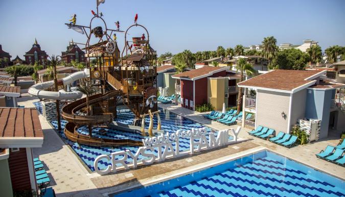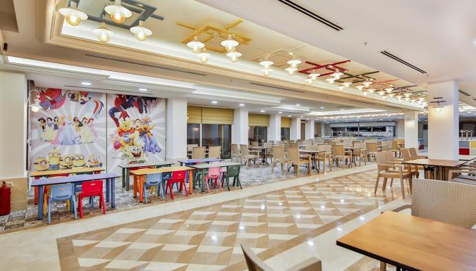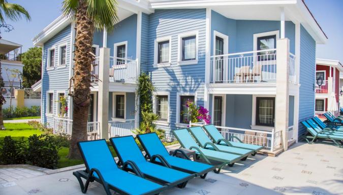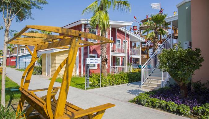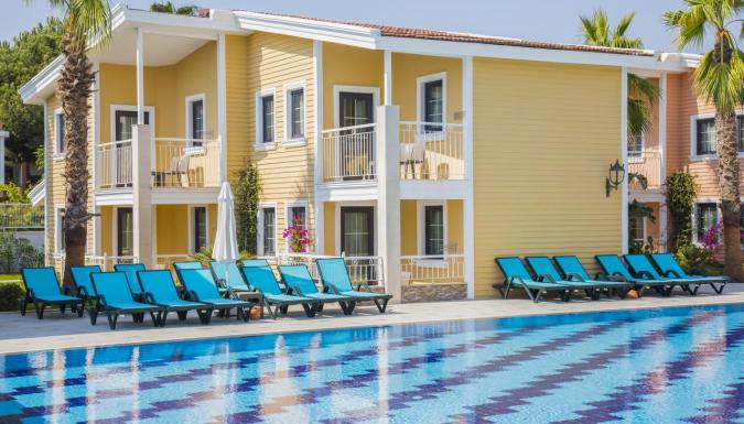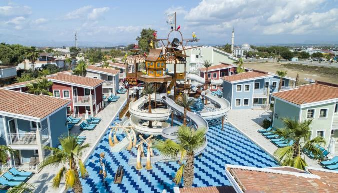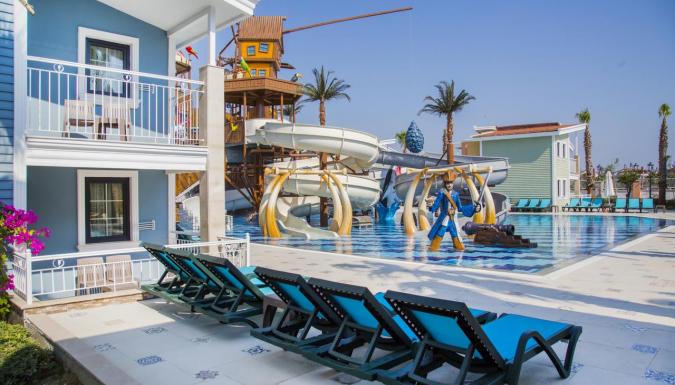 Отель в местечке Богазкент, до частного песчаного пляжа предлагается трансфер. Аквапарк для взрослых и детей, мини-клуб для малышей и подростков, анимация. Рекомендуется для семейного отдыха.