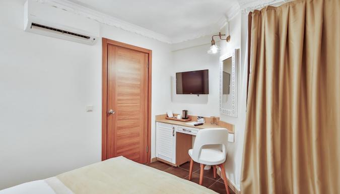 телевизор набор для приготовления чая/кофе душ пол: керамическая плитка сейф: в номере, бесплатно фен балкон телефон уборка номера: ежедневно мини-бар бесплатно (прохладительные напитки) кондиционер: индивидуальный Интернет: Wi-Fi, бесплатно room service: платно русских каналов: 1 смена белья: 3 раза в неделю