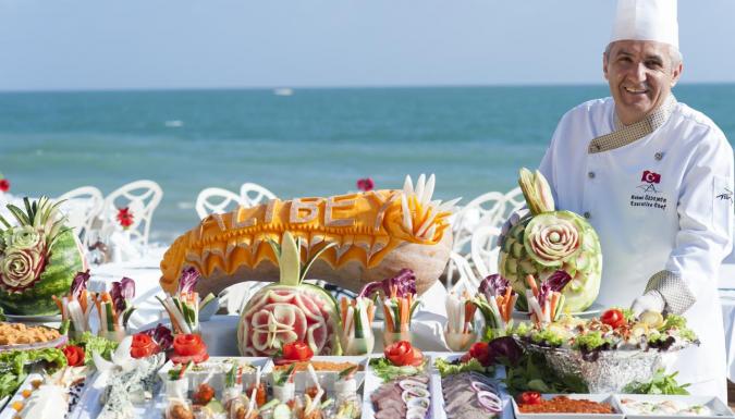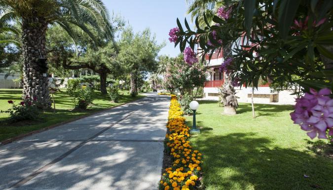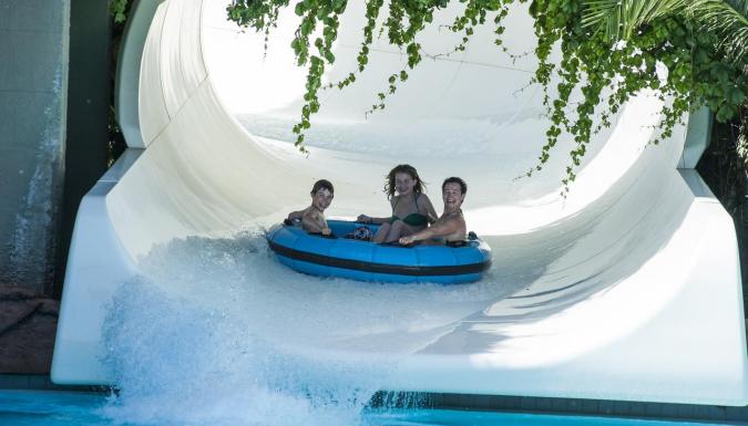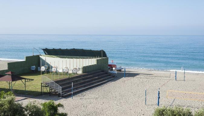 - У отеля большой пляж протяженностью 800 м, аквапарк и крупнейшая в Европе теннисная площадка