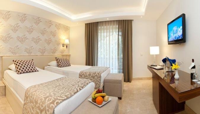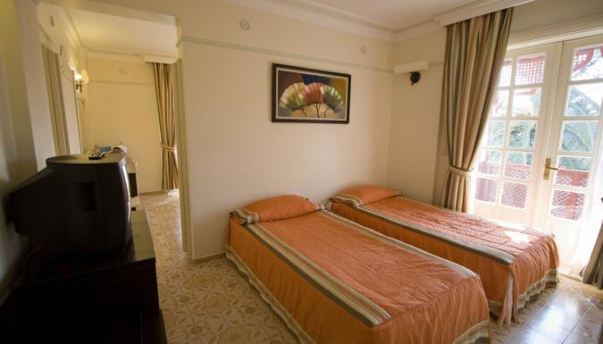 Телефон, смена белья: 3 раза в неделю, кондиционер: индивидуальный, мини-бар бесплатно (вода, прохладительные напитки и пиво - ежедневно), балкон, уборка номера ежедневно, телевизор (русский канал), фен, пол керамическая плитка (мрамор), душ, сейф, Wi-Fi (бесплатно).