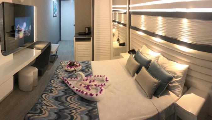 Пятизвездочный отель в Конаклы, в 100 м от пляжа. Компактная территория, бассейн с подогревом по погодным условиям, Wi-Fi на всей территории, в номерах и на пляже. Разнообразные развлечения по вечерам — от живой музыки до просмотра фильмов, днем — мастер-классы для детей и взрослых.