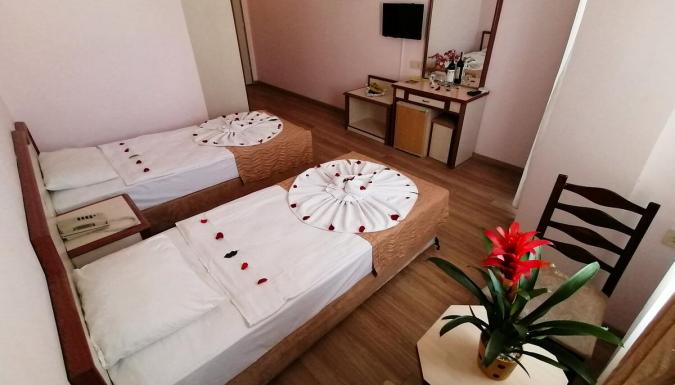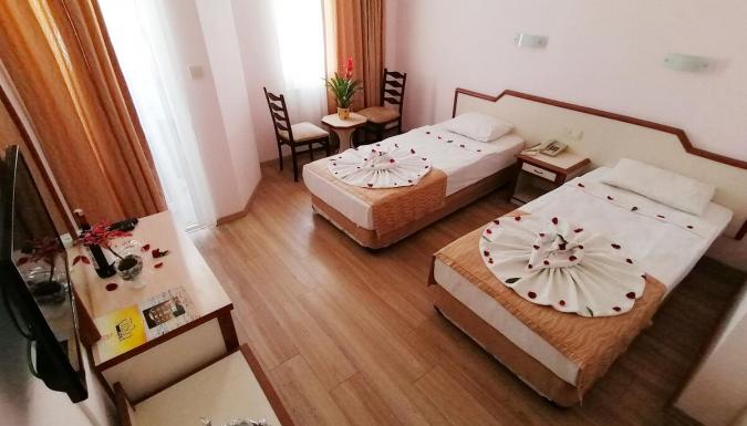 Достаточно простой, но симпатичный отель рядом с центральной частью курорта, в пешей доступности от песчаного пляжа Клеопатры. Удобные светлые номера, питание «все включено». Для отдыха с небольшими затратами.