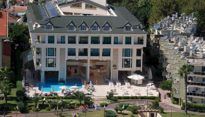 Построен в 1990 г., реконструкция в 1999 г. Один трехэтажный корпус. Отель работает по системе "Все включено". Территория: ресторан, 2 бара, открытый бассейн, закрытый бассейн, врач по вызову, прачечная, конференц-зал (на 60 чел), 2 магазина, обмен валюты, прокат автомобилей. Для детей: детский бассейн. Бесплатно: открытый бассейн (165 кв.м), открытый детский бассейн (10 кв.м), анимация, сауна, джакузи, турецкая баня, тренажерный зал, настольный теннис, дартс, настольные игры. Платно: массаж, водные виды спорта, сейф (на ресепшн), прачечная, обслуживание в номерах, врач, бутилированное вино местного производства, фотограф. Пляж в отеле Golden Lotus Hotel. Пляж: галька; шезлонги, зонтики - бесплатно. Пляжные полотенца выдаются под депозит.