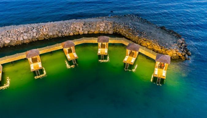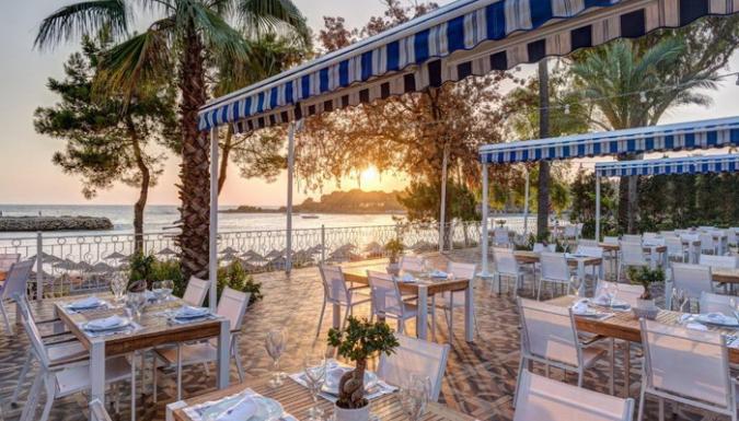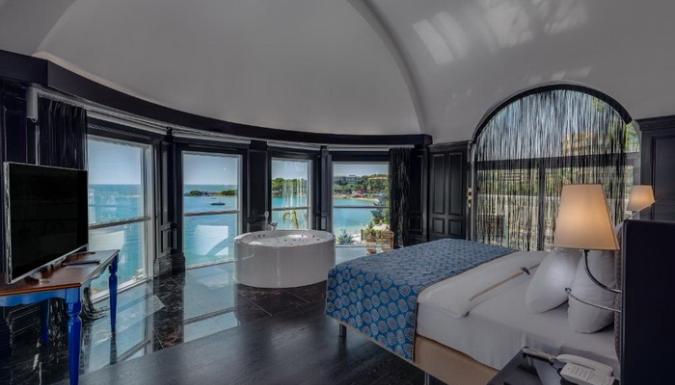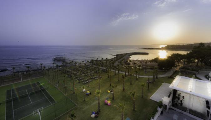 Собственный пляж в частной бухте, а также открытый и крытый бассейны, теннисные корты и спа-центр.