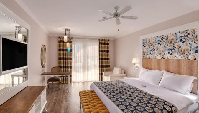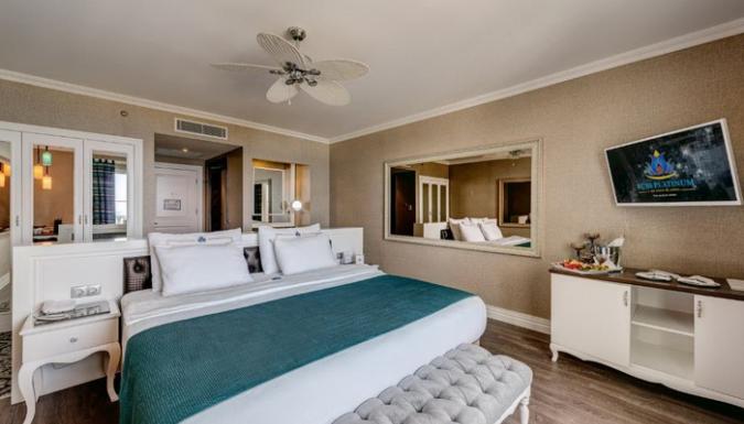 Номера курортного отеля Rubi Platinum со вкусом обставлены современной мебелью и располагают телевизором с плоским экраном со спутниковыми каналами и бесплатным Wi-Fi. Из некоторых номеров открывается вид на море или бассейн, а некоторые номера оборудованы гидромассажной ванной.