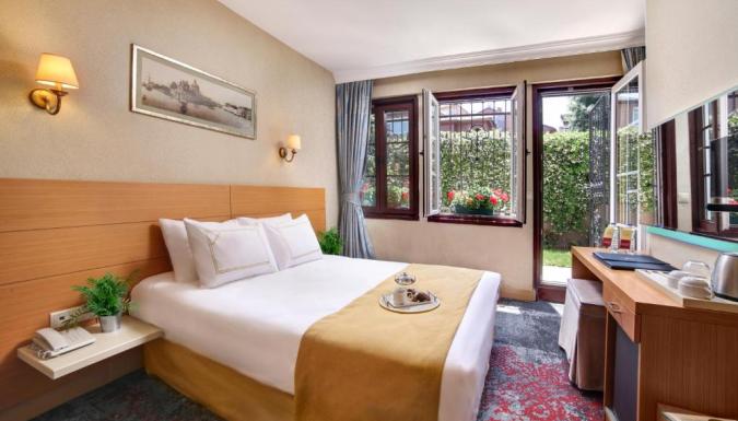 Этот отель расположен в историческом центре Стамбула, в нескольких шагах от Голубой мечети и собора Святой Софии. К услугам гостей хорошо оборудованные номера с бесплатным беспроводным доступом в интернет. По прибытии в отель гостей будут ждать бесплатная корзина с фруктами и приветственный напиток. Утром в отеле накрывают роскошный завтрак «шведский стол» с горячими и холодными блюдами. Гости отеля могут совершить прогулку по историческому району Султанахмет и посетить музей-дворец Топкапы, Гранд базар и другие известные достопримечательности, а по возвращении — провести время на террасе на крыше отеля Almina, с которой открывается вид на Мраморное море. Отель находится в 54 км от аэропорта Стамбул.