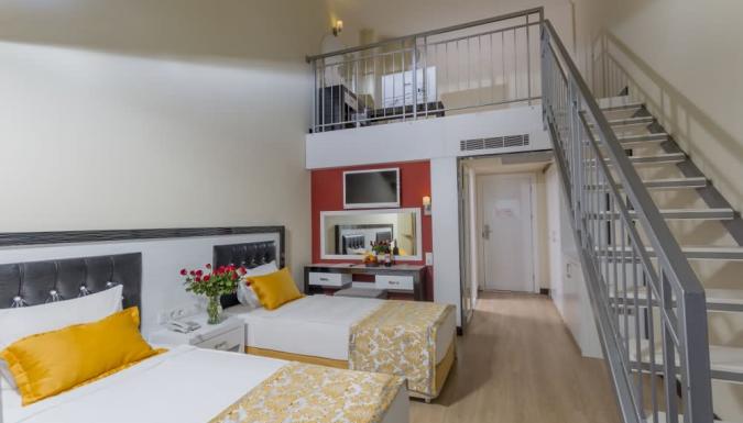 Отель в курортной зоне города Сиде — поселке Чолаклы. Песчаный пляж находится в 150 метрах от отеля, через дорогу. Представлен весь спектр развлечений и спортивных мероприятий для взрослых и детей.