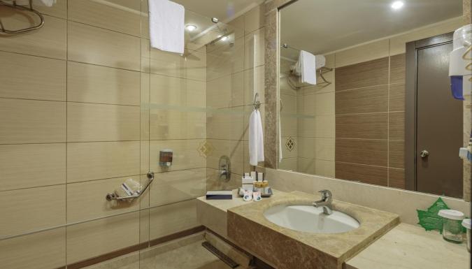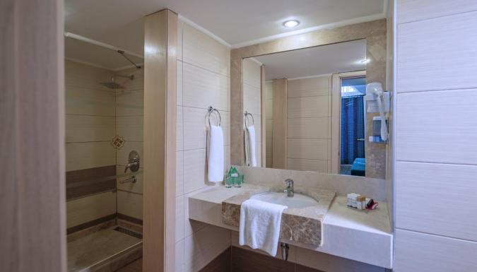 Ванная комната с душевой кабиной, фен, индивидуальный кондиционер, телефон, мини-бар, сейф, спутниковое ТВ с музыкальным каналом, балкон/терраса.