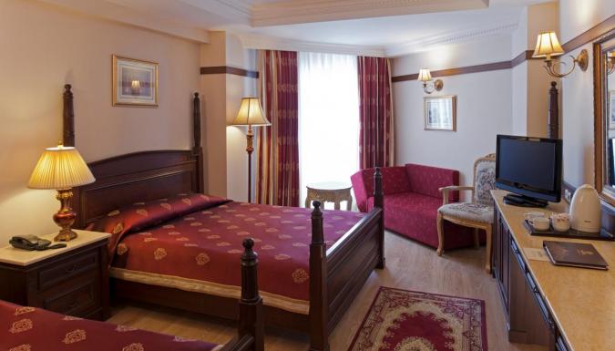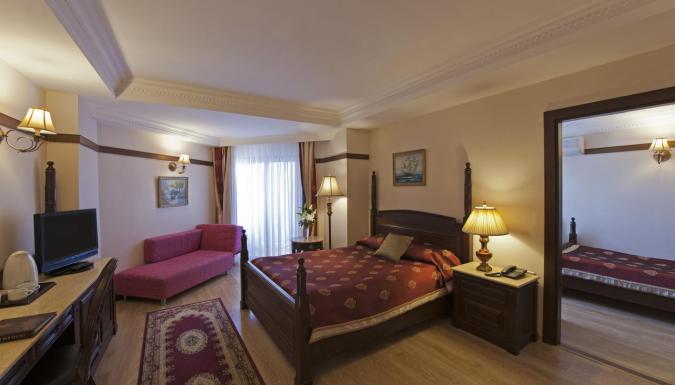 Центральный кондиционер (работает в определенное время), мини-бар (безалкогольные напитки, пиво, вода - пополнение ежедневно), спутниковое ТВ с российскими каналами, прямой телефон, Wi-Fi (бесплатно), ванная комната (душ), фен, сейф (бесплатно), балкон, софа.
