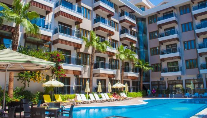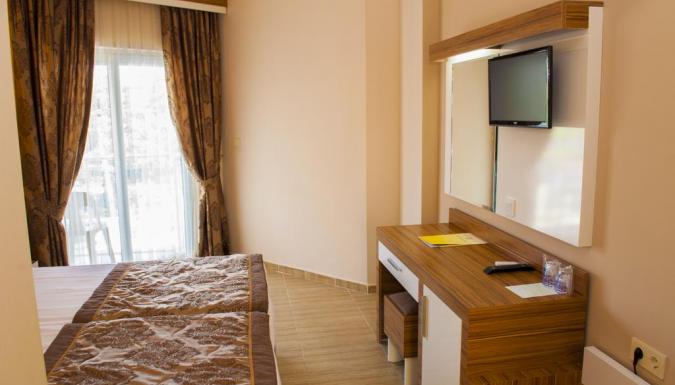 Расположение: в 65 км от аэропорта Анталии, в 1 км от центра г.Сиде, в 150 м от собственного пляжа. Отель: Построен в 2004 году, общая площадь 2600 м2. Последняя реновация прошла в 2013 году. Отель состоит из одного 5-этажного здания: 39 eco room (макс. 2 чел., 16-18 м2) 59 standard room (макс. 3 чел., 18- 23 м2) 26 family room (гостиная, спальня с дверью, макс. 4 чел., 32 м2) Пляж песчаный на пляже зонтики, шезлонги: бесплатно собственный на пляже полотенца: платно - круглосуточный reception; - парковка автомобилей; - лифт.
