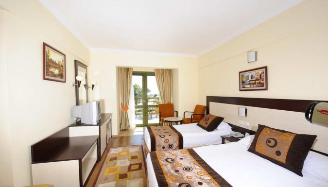 Отель с большой зеленой территорией расположен на берегу моря. К услугам гостей — большой открытый бассейн, водные горки, спа-центр и тренажерный зал. Работает анимация, достойный уровень питания. Прекрасно подойдет для отдыха всей семьей.
