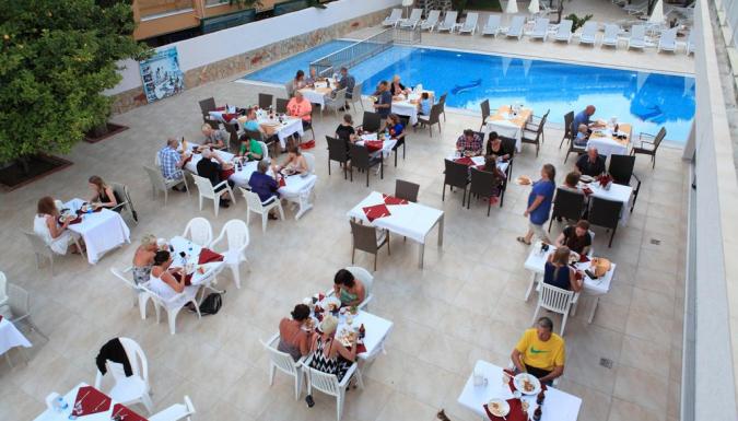 Уютный трехзвездочный отель в 10 минутах ходьбы от пляжа. Условия для отдыха с детьми, спа-центр, бассейн с водными горками. Вариант для семейного отдыха с небольшими затратами.