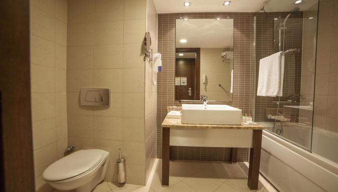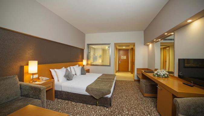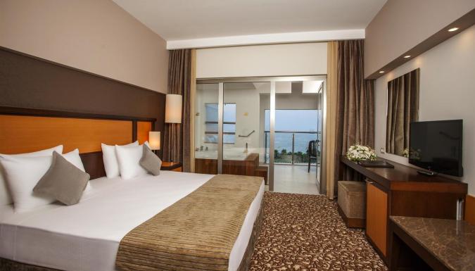 Центральный кондиционер (работает в зависимости от погодных условий), спутниковое ТВ с российским каналом, мини-бар (прохладительные напитки - пополнение ежедневно), прямой телефон, ванна, фен, сейф, балкон, дополнительная кровать (по запросу).