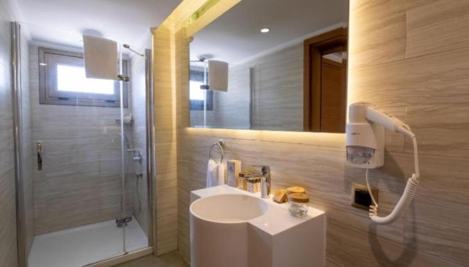 В каждом номере установлен кондиционер и мини-бар, а также обустроен балкон и гостиный уголок. Собственная ванная комната оборудована душем и укомплектована феном. Из окон открывается вид на сад и море.