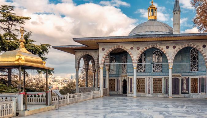 Дворец Топкапы - бывшая резиденция османских султанов на протяжении почти 400 лет, откуда они управляли огромной империей. Дворец представляет собой комплекс павильонов, гаремов, кухонь и садов, расположенный на мысе с захватывающим видом на Босфор и Золотой Рог.