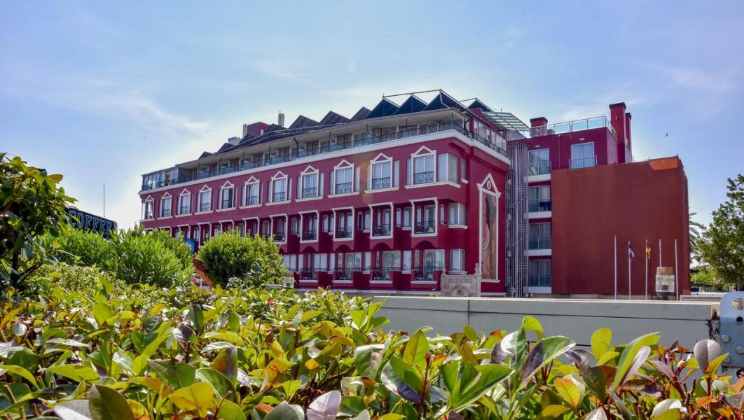 Отель в 12 км от аэропорта, в 5 км от центра г. Анталья, на высоком берегу в 5 метрах через дорогу от моря.