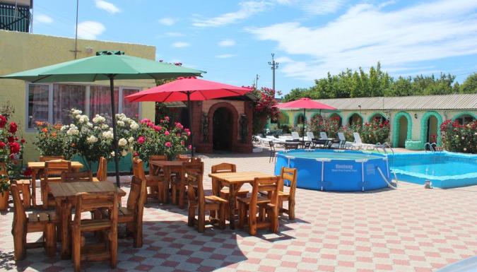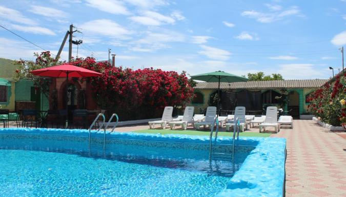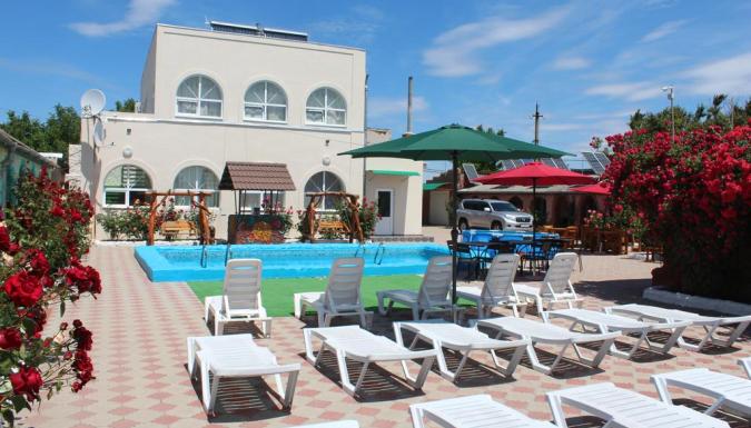 в гостевом доме расположены 2-х, 3-х, 4-х и 5-ти местные номера и двухкомнатные повышенной комфортности. Горячая вода круглосуточно. На территории гостевого дома находится бассейн с подогревом воды для взрослых (5х8 метров, глубина 1,60 м) и небольшой бассейн для детей (диаметр 3 метра, глубина 60 см). Рядом с бассейнами шезлонги и столы с зонтами. Также во дворе гостевого дома беседки для больших компаний, мангалы, сауна, спортивный батут и спортивная площадка, аэрохоккей. Бесплатный Wi-Fi