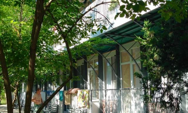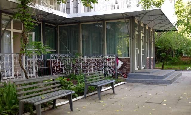 Описание: Первый этаж двухэтажного здания с верандой, отдельный санузел, душ, холодильник, телевизор, две или три кровати, шкаф, тумбочки, чайник, вентилятор.