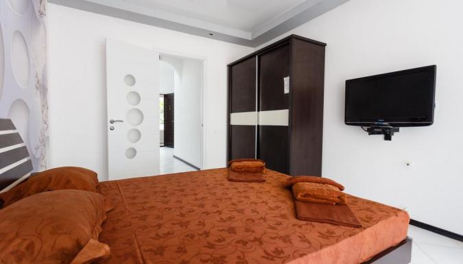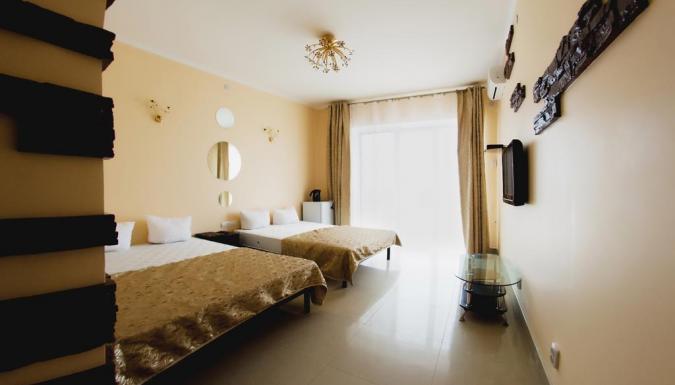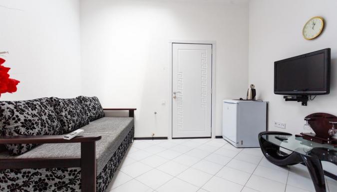 «Апартаменты» - это 2-х комнатный номер со всеми удобствами (современные душевые кабины из стекла, горячая и холодная вода круглосуточно, сейф, холодильник, кондиционер, ЖК телевизор в каждой комнате, фен, набор принадлежностей индивидуального пользования, эл. чайник, набор посуды, бесплатный вай-фай).