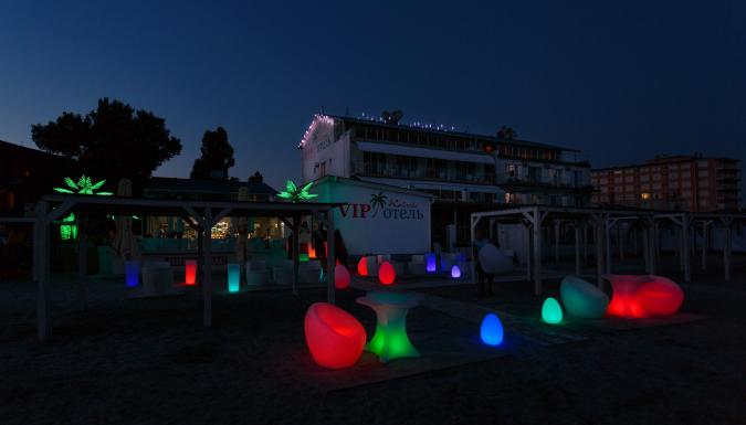 Кафе на открытой террасе с видом на море работает целый день. Здесь вы можете заказать блюда украинской кухни, десерты и разнообразные напитки. Для гостей с детьми есть отдельное детское меню с хорошим выбором блюд. Ресторан открывается ближе к вечеру, чтобы поразить гостей своей иллюминацией. Светящиеся столики и кресла-полусферы, расположенные прямо на пляже, деликатесы и напитки на любой вкус, внимательные официанты и первоклассный сервис – мы постарались создать для вас волшебную атмосферу праздника и уюта.Сауна, карпатский чан.Тренажерный зал, настольный теннис.Охраняемая парковка;