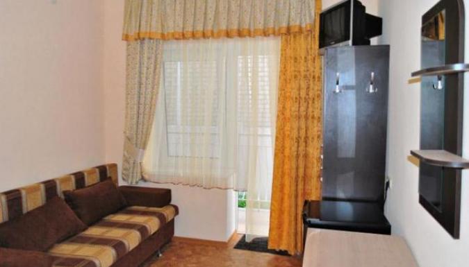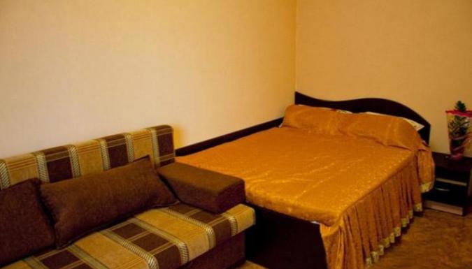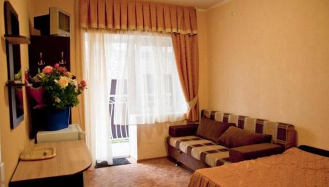 В номерах есть двуспальная кровать с ортопедическим матрасом, раскладной диван, телевизор, холодильник, шкаф, трюмо, санузел (умывальник, туалет, душевая, холодная/горячая вода круглосуточно)