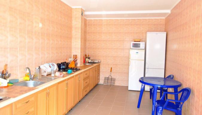 Ресторан: Между пляжем и пансионатом находится кафе. На втором этаже есть кухня для самостоятельного приготовления еды, на кухне есть все необходимое (по 2 газовых плиты, холодильники, микроволновки , мясорубка, посуда). Стирка и глажка белья