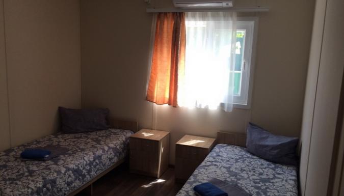 В каждом 2-3-4х местном номере (блочная система): кондиционер, холодильник, телевизор, на каждые два номера санузел (душ, умывальник, туалет). Все номера с отдельным входом, террасой, горячая и холодная вода постоянно