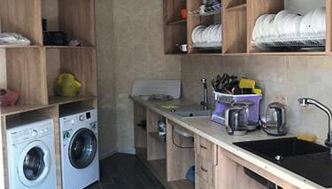 - на кухне есть стиральные машины