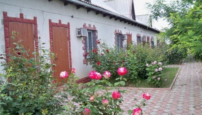 Территория базы просторная, с большим количеством деревьев и клумб с розами.