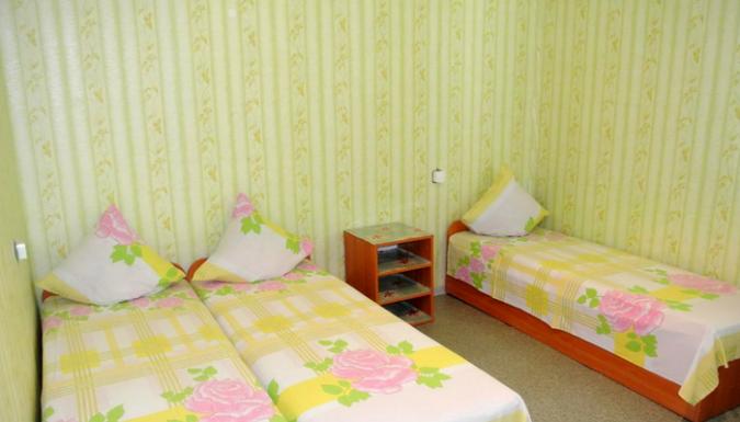 В УЛУЧШЕННЫХ номерах установлены кондиционеры, есть телевизор, холодильник, работает Wi-Fi, стоят новые ортопедические кровати, тумбочки, журнальные столики. Эти номера просторные, с высокими потолками. Удобства (душ с подогревом, умывальники, туалет) находятся во дворе.