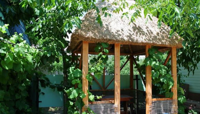 В небольшом уютном дворике есть беседка, где можно отдохнуть в тени.