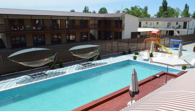 Мини-отель «Аквамарин» - это двухэтажный комплекс европейского дизайна с террасой выходящей на бассейн. Отель предоставляет 2-3-4-местные однокомнатные и двухкомнатные номера с большими панорамными окнами. Остановившись в «Аквамарине», Ваш отдых будет незабываемый в САМЫХ лучших условиях на побережье. На территории мини-отеля «Аквамарин» расположен бассейн, вокруг него расставлены шезлонги с водоотталкивающими матрасами, большие зонты, гамаки, беседки с выходом на море, детская площадка, качели. Также на территории находится кухня для самостоятельного приготовления, где есть вся необходимая посуда, микроволновка. Питания нет!