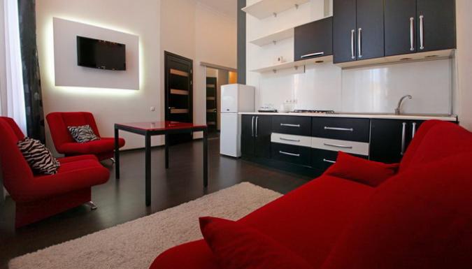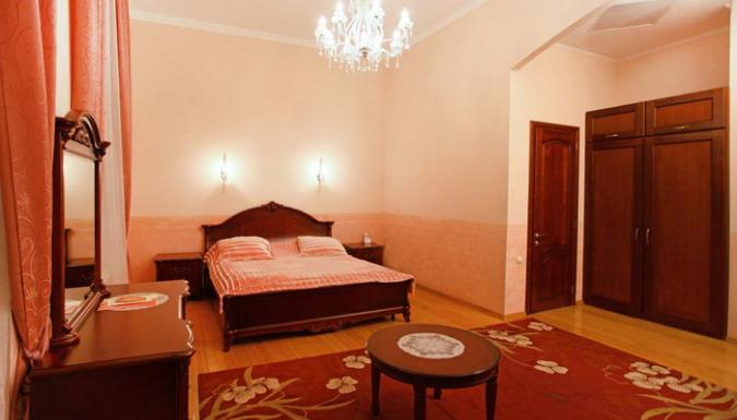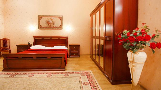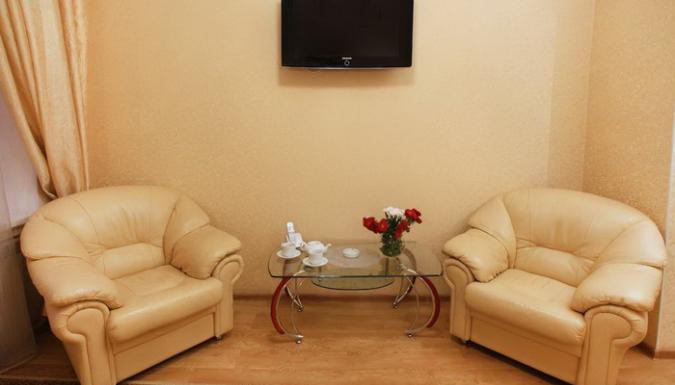 Все люксы гостиницы "Екатерина" оборудованы мини-баром и удобствами для приготовления чая и кофе. Также в люксах есть гостиный уголок. Халат и тапочки предоставляются бесплатно.