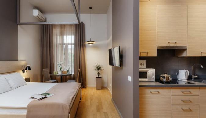 Просторные номера и люксы дизайн-отеля «UNO» оснащены телевизором с плоским экраном. В распоряжении гостей собственная полностью оборудованная мини-кухня. Также в числе удобств тапочки и туалетно-косметические принадлежности.