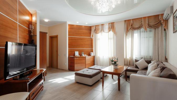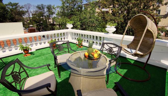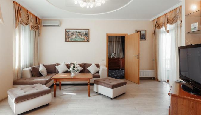 Номера и люксы отеля «Одесский дворик» оформлены в индивидуальном стиле, в ярких тонах. В них имеется телевизор, мини-бар и кондиционер.