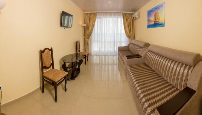 В числе стандартных удобств — телевизор с плоским экраном и собственная ванная комната с душем. Предоставляются фен и бесплатные туалетно-косметические принадлежности. Из окон открывается вид на море.