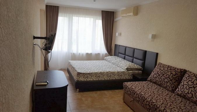Пансионат "Надежда" приглашает провести незабываемый летний отпуск на одном из лучших курортов Украины. Расположен на первой линии от моря в непосредственной близости к курортной инфраструктуре. Пансионат полностью реконструирован и является одним из современных на всем побережье курорта Коблево. Общая площадь территории составляет 1,5 гектара. Для размещения гостей предоставляются номера категории "Комфорт", в которых есть все необходимое для проживания 2-3-4 человек. На территории доступен беспроводной интернет, оборудованы места для отдыха.