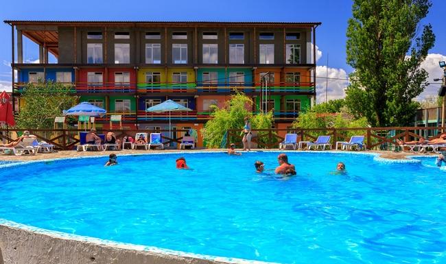 Песчаный обустроенный пляж, уютные номера, просторная территория (2 га) с искусственным прудом и зонами отдыха, спортивными площадками и бассейном.