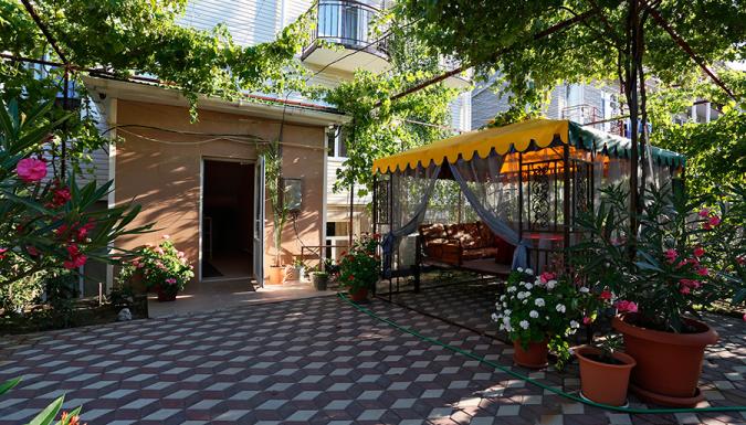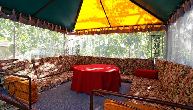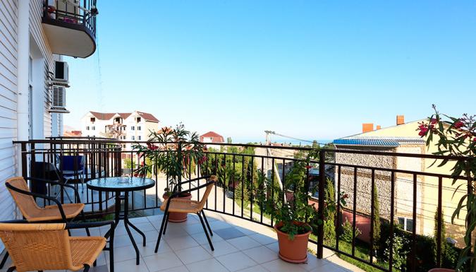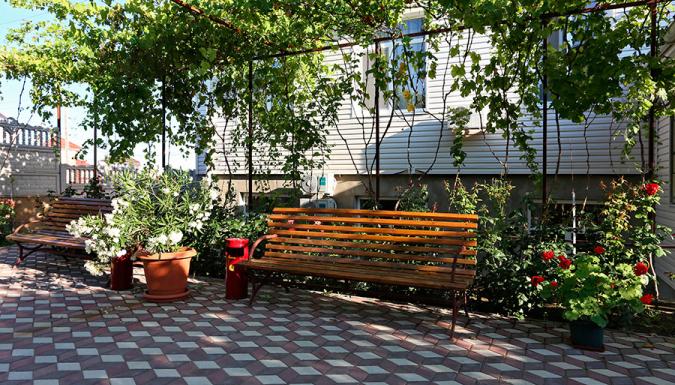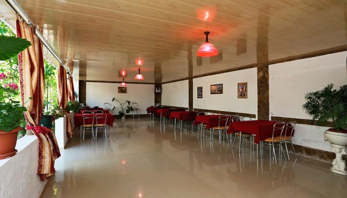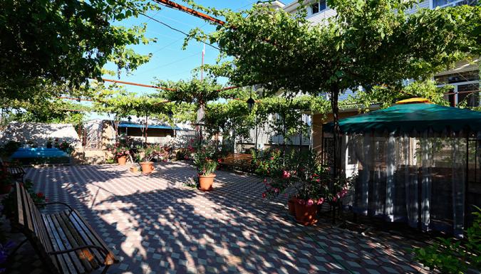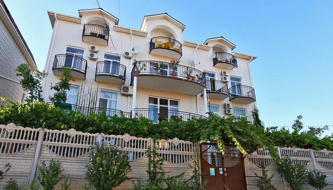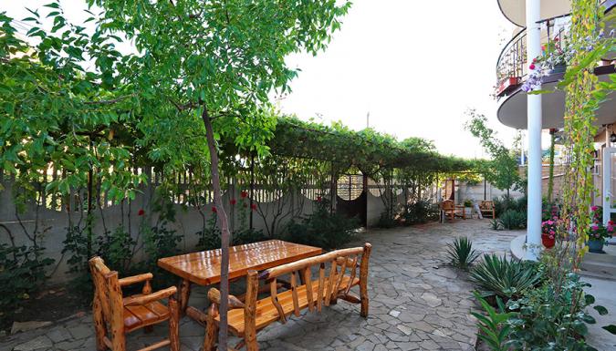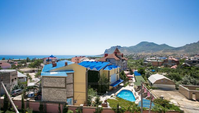 Гостевой дом находиться в районе аквапарка. Из номеров дома открывается шикарный обзорный вид, практически на весь Коктебель и "Кара-Даг". На территории гостевого дома есть собственное кафе, где можно заказать комплексное питание, блюда восточной и европейской кухни.