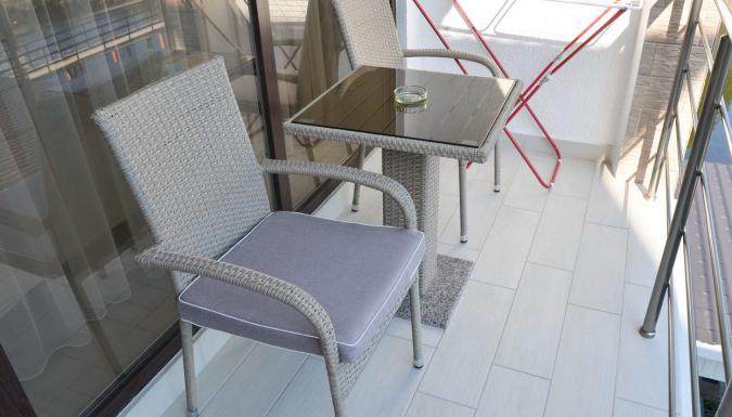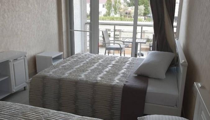 двуспальная кровать, прикроватные тумбочки, шкаф, столик, стулья, ЖК телевизор (кабельное TV), холодильник, кондиционер, санузел с душевой кабиной, сантехникой и набором полотенец, балкон с набором мебели. WI-FI