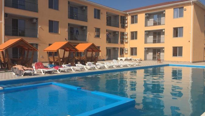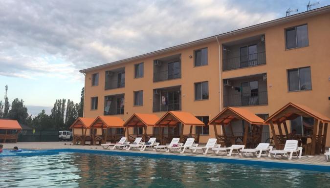 Новый отель в Коблево 2019 года постройки. Отель "Апельсин" - это современные одно и двухкомнатные комфортные номера в 3-этажном капитальном здании. На территории для гостей бассейн для взрослых и детей, шезлонги у бассейна. Можно отдохнуть в деревянных беседках, купить прохладительные напитки в баре на территории. Для детей есть батут и качели. Для размещения в отеле "Апельсин" предоставляются номера со всеми удобствами.