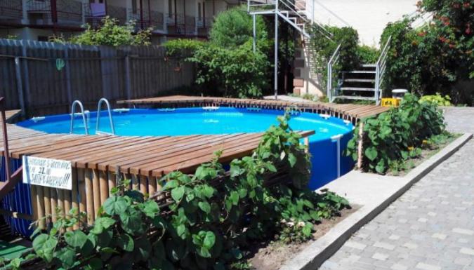 Функционирует круглосуточный беспроводной доступ к интернету. На ухоженной территории имеется бассейн, две больших беседки, детская площадка, зона отдыха с мангалом и автомобильная парковка.