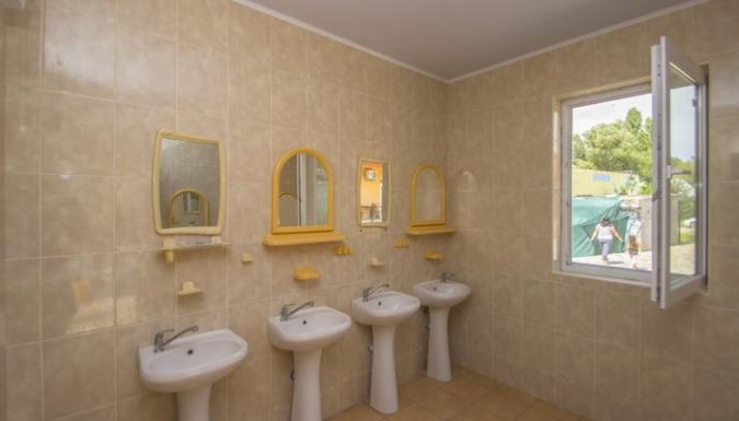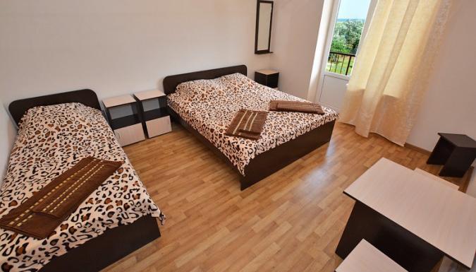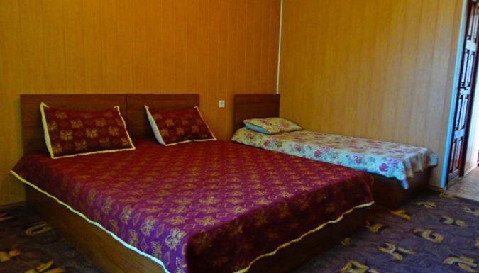 3-4-5-местные номера размещенные по 4-5 номеров в уютных деревянных домиках. Удобства в отдельном новом корпусе с евроремонтом: умывальники, душевые (горячая вода), туалеты в достаточном количестве. В номерах стандартный комплект мебели, холодильник