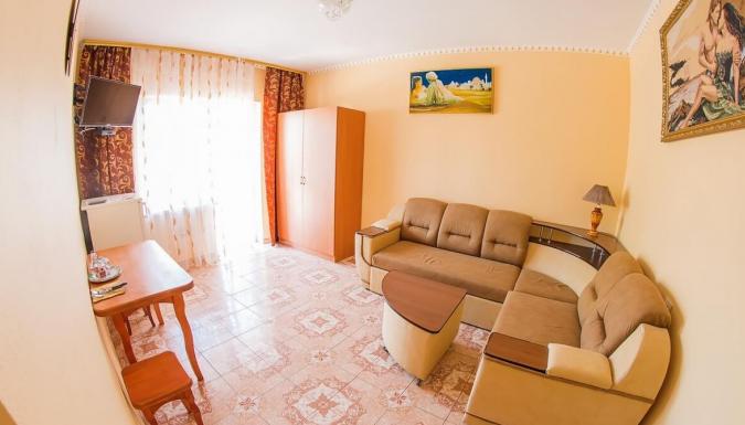 ТВ, Холодильник, Кондиционер, Сейф, Посуда, Санузел в номере или на этаже в зависимости от категории номера